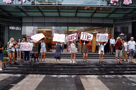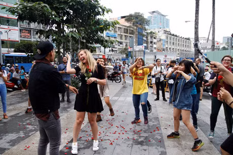 Nhân vật chính trong màn cầu hôn này là anh chàng Lê Khánh Luân (22 tuổi, ngụ quận 10, TPHCM) và cô bạn gái Rebbeca Am Lambton (quốc tịch Anh). Hiện Luân làm tại một quán bar còn Rebbeca là giáo viên tiểu học của một trường quốc tế.