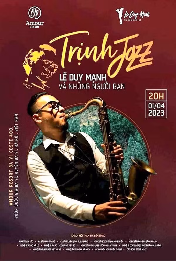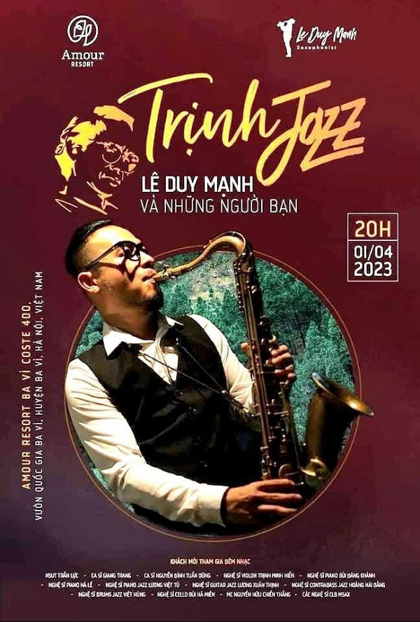 Ngoài ra, ở Amour Resort Ba Vì Coste 400 vườn quốc gia Ba Vì (Hà Nội) cũng tổ chức đêm nhạc “Trịnh Jazz - Lê Duy Mạnh cùng những người bạn”, lúc 20 giờ ngày 1 tháng 4.