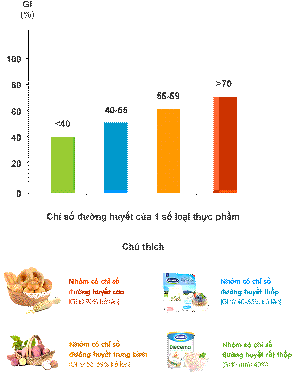 - Thực phẩm có chỉ số đường huyết thấp ( GI từ 40-55%):