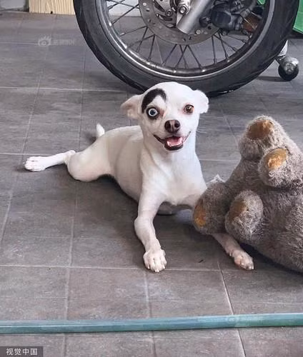 Thú vị thay, đó chưa phải là những gì đặc biệt nhất ở Lucky. Trên con mắt màu xanh của chú chó này là một vệt lông màu đen, cong cong hệt như lông mày ở con người.