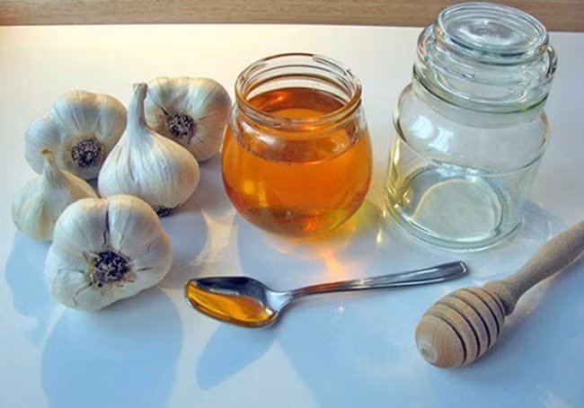 3, Cho thêm 1 thìa canh nước lọc cùng mật ong vào bát nước ép tỏi rồi dùng thìa khuấy đều, sao cho nước ép tỏi được pha loãng với nước và mật ong là được.