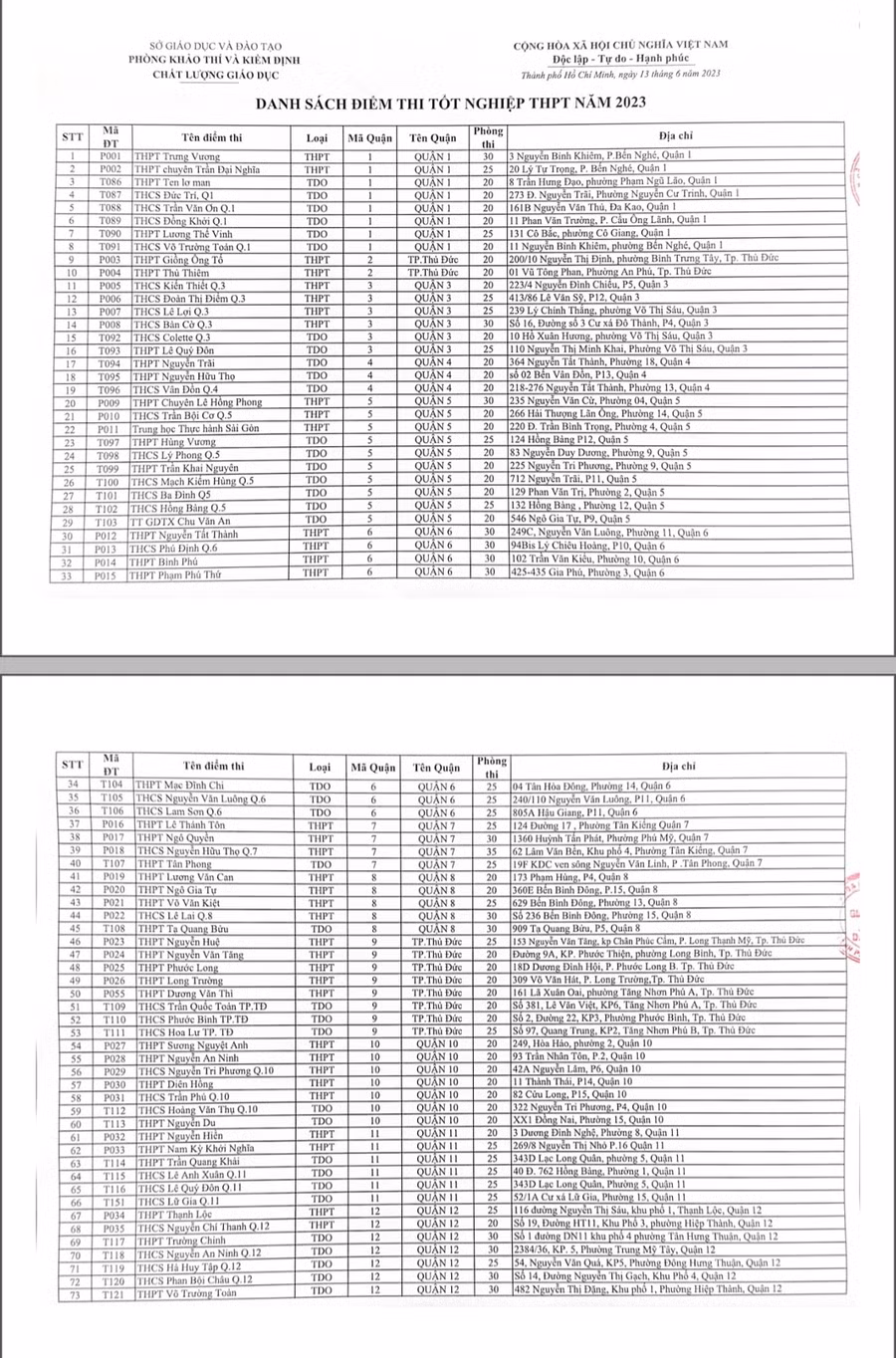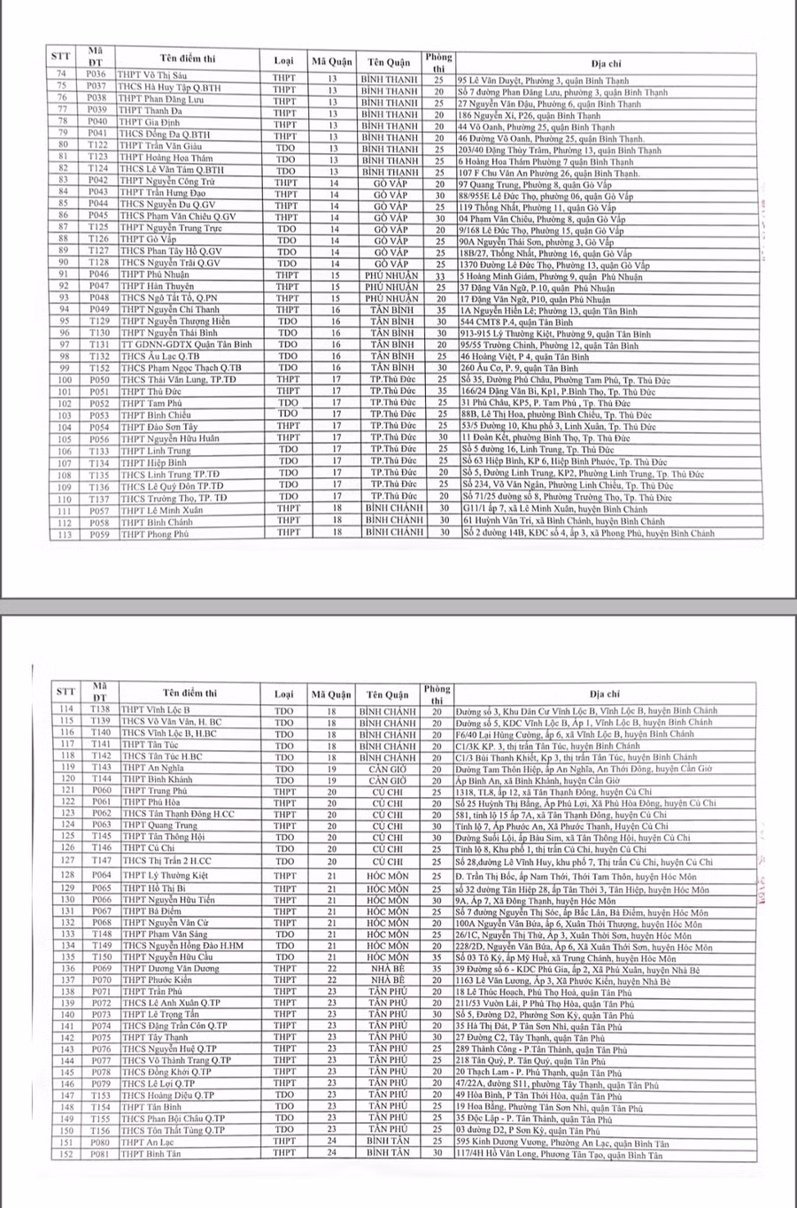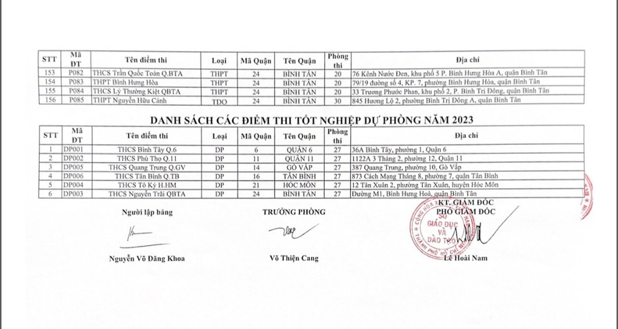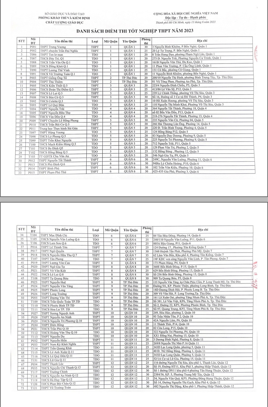 Chi tiết các điểm thi THPT năm 2023 tại TPHCM: