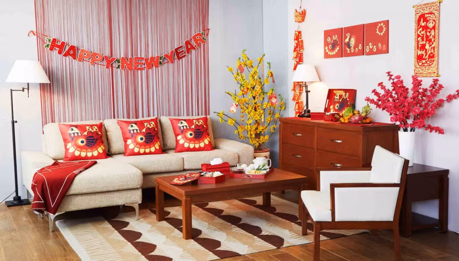 Dịp năm mới, phòng khách càng trở nên quan trọng bởi đây là bộ mặt của căn nhà, nơi quây quần ấm cúng của người thân, bạn bè tới chúc Tết gia chủ. Bởi vậy, gia đình nào cũng cố gắng dọn dẹp khu vực này và bày biện trang trí nhiều vật dụng phù hợp trong năm mới để bộ mặt căn nhà thêm bừng sáng, tinh tươm.
