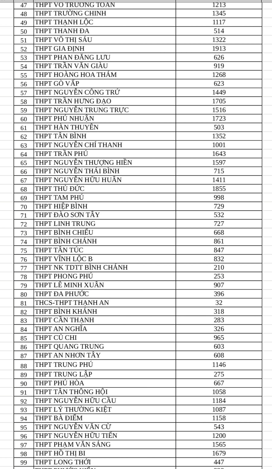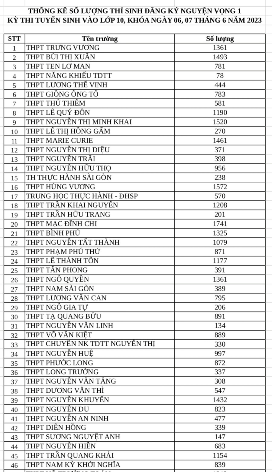 | Số liệu thí sinh đăng ký nguyện vọng 1, kỳ thi tuyển sinh lớp 10 tại TPHCM. |