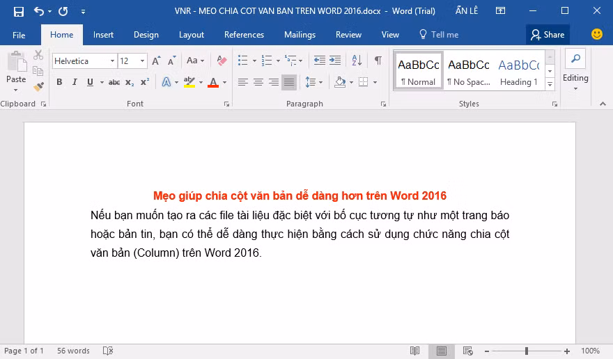 Chúng ta đã hoàn thành việc tạo cột văn bản thứ hai, bước tiếp theo chúng ta cần làm là trả văn bản trên tài liệu về chế độ cột đơn.
