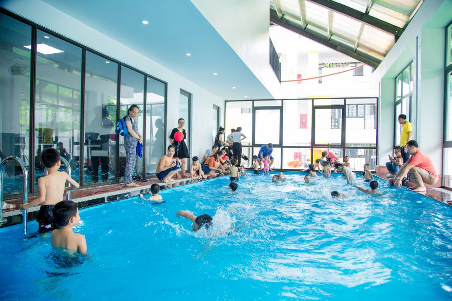 | Thiết kế của trường bao gồm 3 tòa nhà nối tiếp nhau, 34 lớp học cùng hệ thống phòng thực hành, phòng năng khiếu, phòng học STEM, nhà hát, bể bơi 4 mùa, phòng tập Taekwondo, nhà ăn tự chọn phong cách Á-Âu, khu vận động trong nhà và ngoài trời, sân bóng đá mini, vườn thủy sinh… đảm bảo về công năng học tập, đào tạo và vui chơi. |