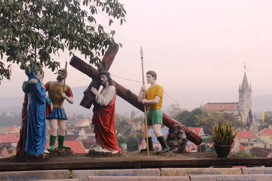 Cách nhà thờ đá Bảo Nham là khu lèn đá với nhiều bức tượng các thánh