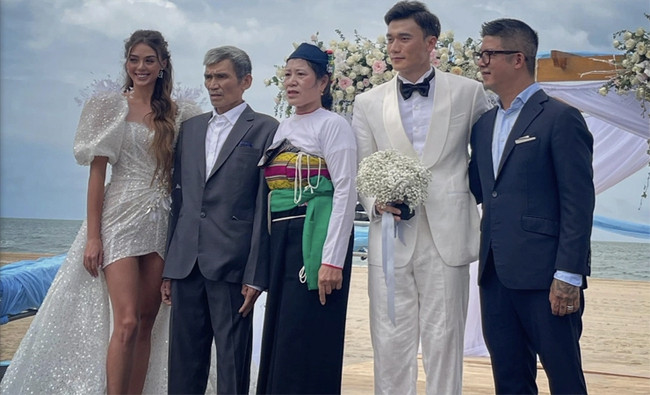 Bùi Tiến Dũng và bà xã người ngoại quốc tổ chức đám cưới tại Vũng Tàu vào ngày 22/5/2022. Gia đình cô dâu không bay sang kịp mà chỉ có thể gửi lời chúc mừng.