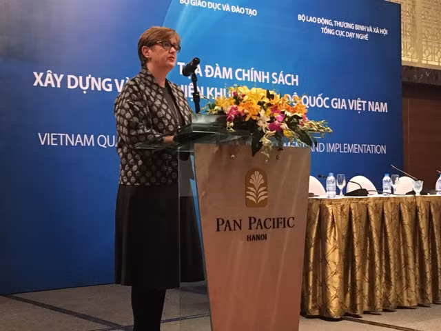 Trong bài phát biểu tại tọa đàm, bà Cherry Gough - Giám đốc Hội đồng Anh - cho biết: 4 trọng tâm thực hiện Khung trình độ quốc gia Việt Nam bao gồm: Tăng cường sự tham gia của nhà tuyển dụng; hài hòa giáo dục dạy nghề và giáo dục đại học; khung tham chiếu trình độ ASEAN; quản lý và đảm bảo chất lượng.