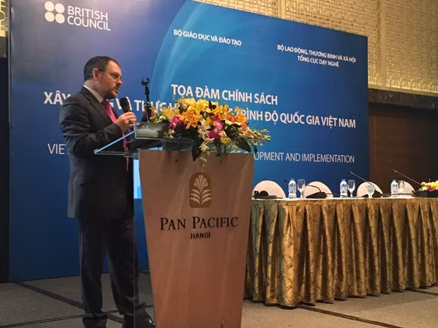 Các đại biểu tham gia tọa đàm cũng được nghe chuyên gia về khung trình độ quốc gia từ Vương quốc Anh - ông Stirling Wood - giới thiệu về cách nước Anh bảo đảm sự thống nhất trong việc áp dụng khung trình độ này. Theo đó, tại Anh, việc thực hiện Khung trình độ quốc gia ở cấp dạy nghề trải qua ba giai đoạn.