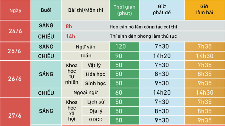 Lịch bài thi môn Ngoại ngữ chiều 26/6 cụ thể như sau: