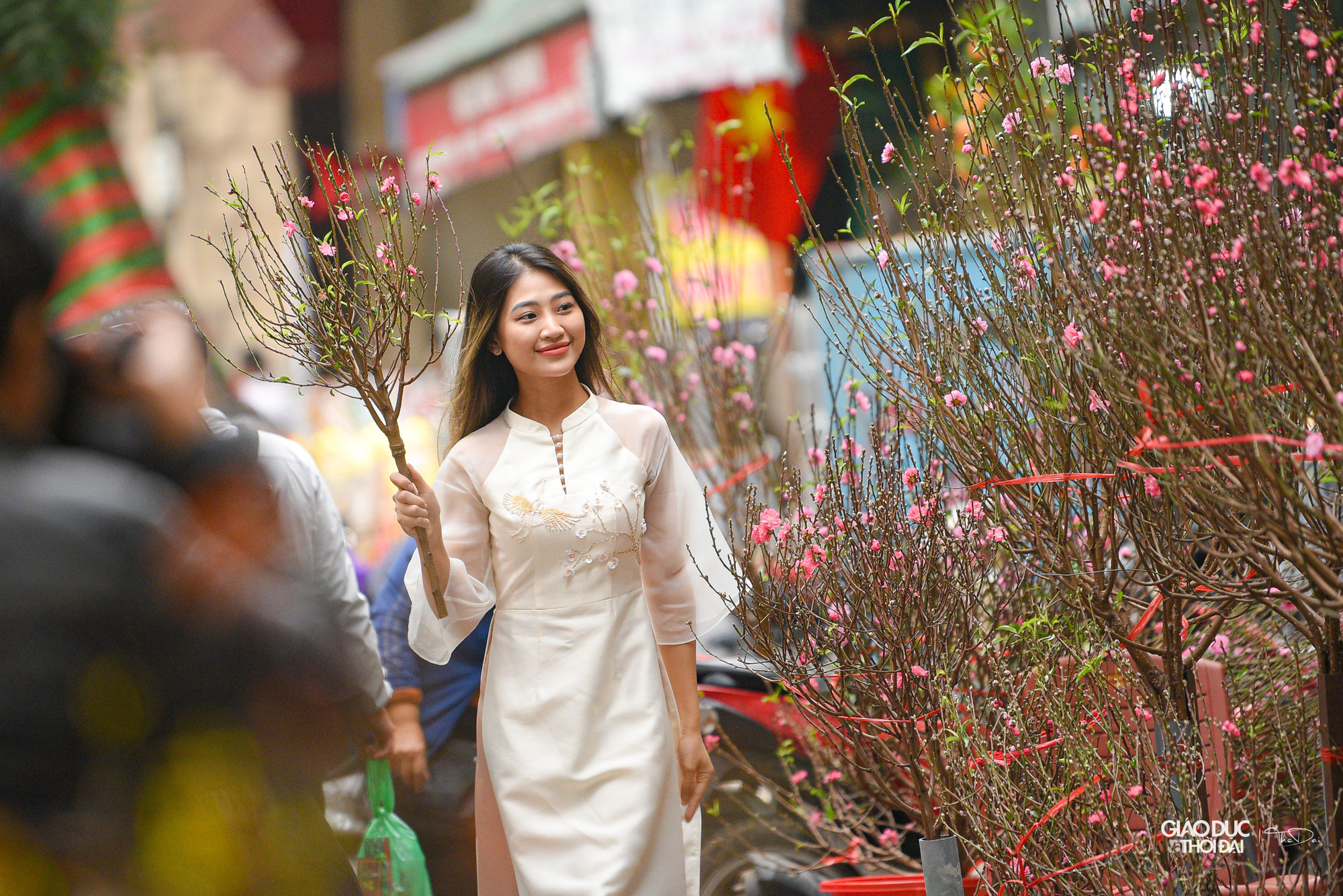 | Nhiều bạn trẻ tới đây chụp ảnh cùng hoa đào để lưu giữ lại khoảnh khắc trước thềm Xuân mới. |