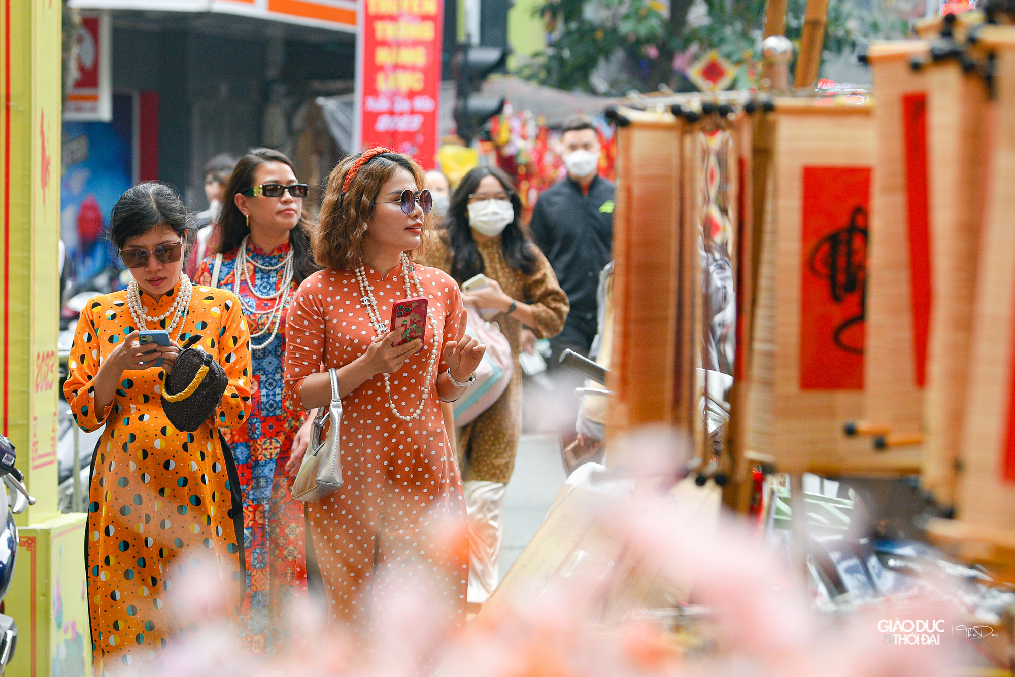 | Phố Hàng Mã cũng thu hút người dân tới những quầy hàng rực rỡ sắc màu các đồ trang trí, phong bao lì xì. |
