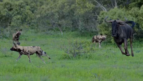 Là loài động vật có tỷ lệ săn thành công cao hơn cả sư tử, báo đốm nhưng đôi lúc, chó hoang châu Phi vẫn chịu thua trước linh dương đầu bò.