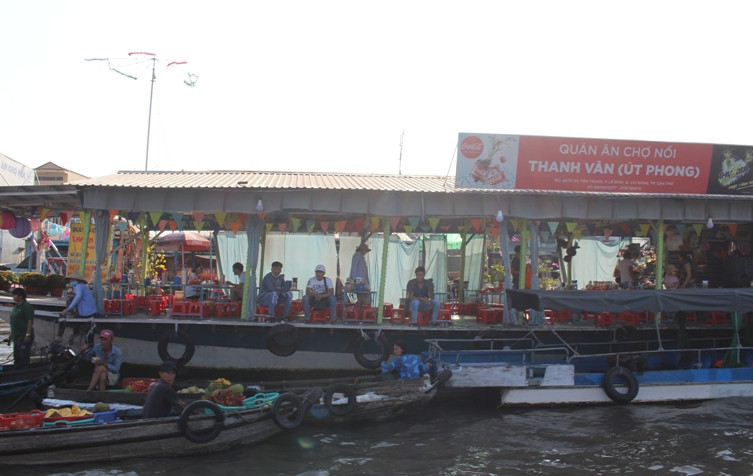 | Quán ăn trên chợ nổi cũng thưa vắng khách. |