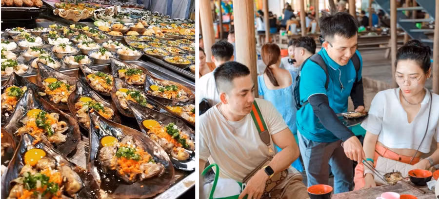 Đặc biệt hút chân du khách trẻ là “thiên đường Street-food” tại chợ đêm Grand World với hàng chục phiên bản trà sữa, bánh tráng trộn, xiên que… Đi dọc theo các gian hàng trong chợ, bạn dễ dàng bắt gặp nhiều loại hải sản thơm ngon như nhum, còi biên mai, mực chớp, ghẹ Hàm Ninh Phú Quốc và nhiều loại cá biển tươi sống khác được bày bán sẵn. Đặc biệt, “spotlight” mùa hè chính là bộ 3 món kem không thể bỏ qua là kem dừa, kem Thái và kem Thổ Nhĩ Kỳ.