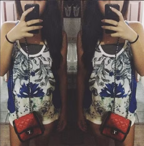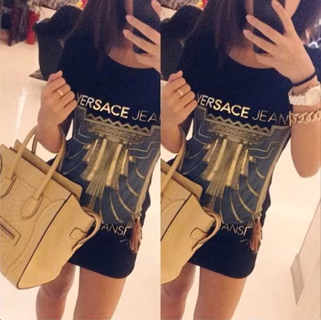 Cô gái trẻ tự tin ra phố với chiếc túi Celine và áo thun họa tiết hiệu Versace.