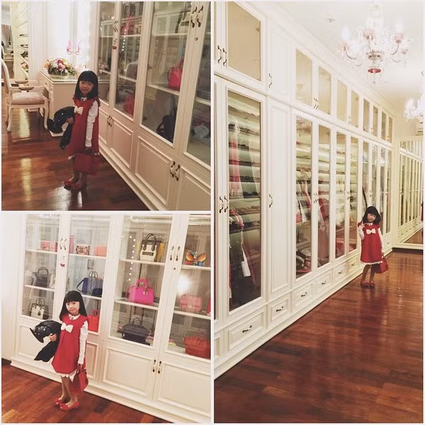 Cô bé sở hữu một tủ đồ riêng để lưu trữ BST túi xách cũng như giày dép của mình. Những bức ảnh street style của Bảo Trâm không hề thua kém bất cứ fashionista nào. Và những chiếc túi xách hàng hiệu mà em bé này sở hữu chắc hẳn là mơ ước của nhiều người.