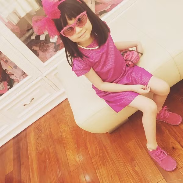 Cô bé thường mặc chủ yếu là váy nữ tính được kết hợp với những mẫu giày bệt dễ thương, giày Mary Jane ngọt ngào rồi nhấn nhá thêm bằng túi/giày hiệu hợp xu hướng nhất. Tất nhiên, những tone màu "chói lọi" mà đứa trẻ nào cũng mê mẩn như hồng, đỏ tươi, da cam... cũng xuất hiện thường xuyên cùng Bảo Trâm.