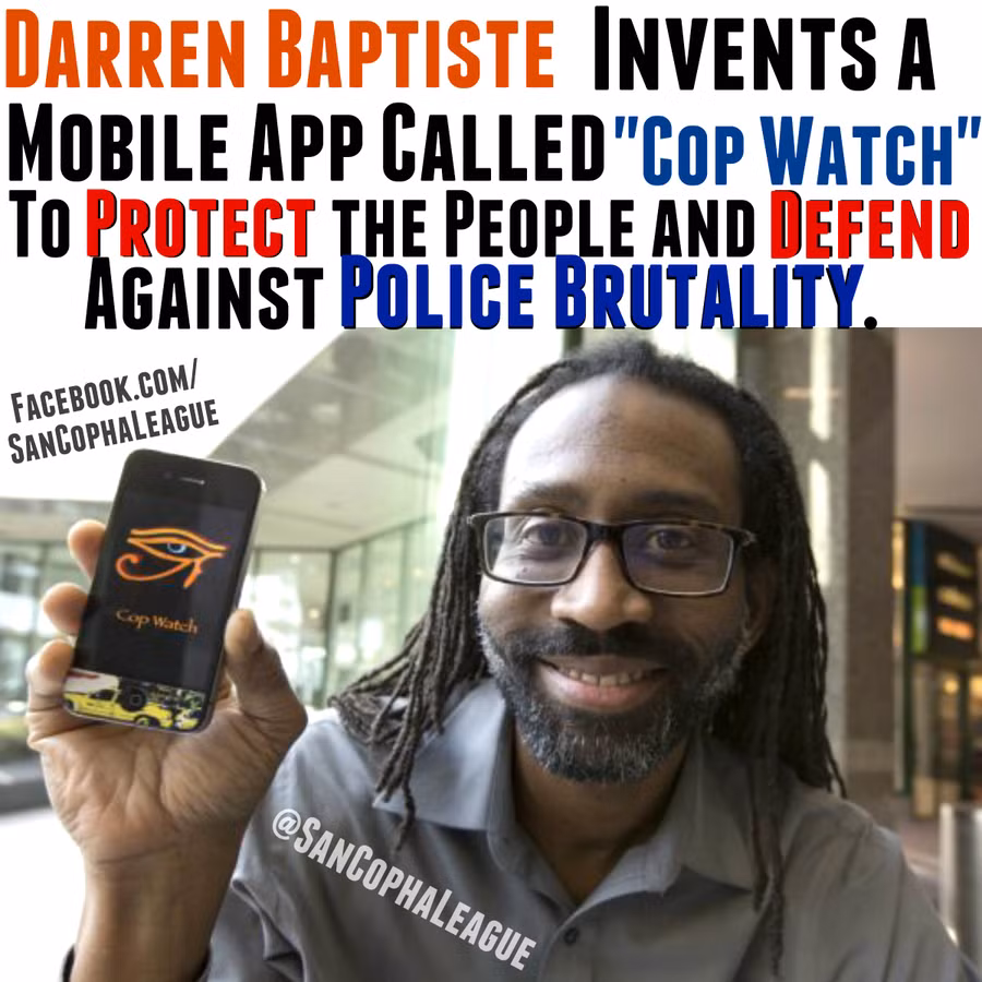 Darren Baptiste cha đẻ của Cop Watch (một ứng dụng iPhone sẽ tự động ghi hình khi bạn gõ vào biểu tượng ứng dụng trên điện thoại và sẽ tự động upload đoạn băng video ghi được cho người quản lý ứng dụng sau khi việc ghi hình hoàn tất) là chuyên gia phát triển ứng dụng cho điện thoại di động tại Toronto, nơi cảnh sát thường dùng võ lực quá mức cần thiết, thậm chí phạm luật trong việc chặn bắt công dân.