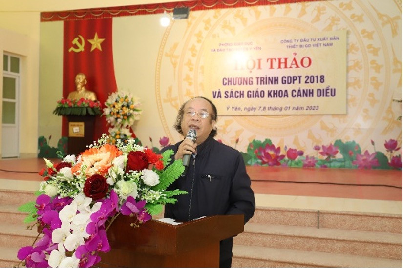 Vừa qua, Phòng Giáo dục và Đào tạo (GD&ĐT) huyện Ý Yên (tỉnh Nam Định) đã phối hợp cùng Công ty CP Đầu tư Xuất bản - Thiết bị Giáo dục Việt Nam (VEPIC) tổ chức buổi Hội thảo “Chương trình GDPT năm 2018 và SGK Cánh Diều” tại trường THCS Yên Tiến. Tham dự Hội thảo, GS.TSKH Đỗ Đức Thái, Tổng Chủ biên sách môn Toán lớp 7; PGS.TS Đỗ Ngọc Thống, Chủ biên SGK môn Ngữ văn lớp 7 đã cùng lắng nghe những chia sẻ, tâm tư và giải đáp những những thắc mắc trong quá trình dạy học của giáo viên.