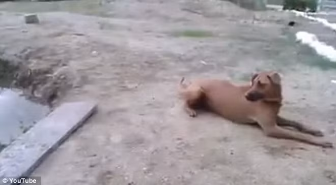 Nhận thấy điều chẳng lành, chú chó đã lao xuồng hồ và vô tình nhảy đúng đầu của người chủ.