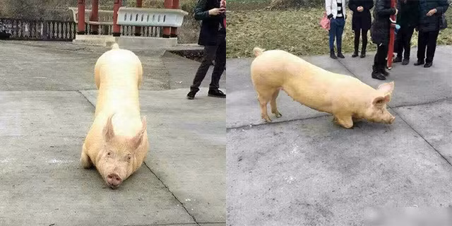 Ngày 23/2 vừa qua, hình ảnh về chú heo kì lạ này được cư dân mạng chia sẻ rộng rãi trên khắp các diễn đàn, trang mạng. Trông nó như đang khấu đầu trước cửa vào chùa, hai chân trước khụy xuống đất, mũi chúi xuống dưới. Rất nhiều Phật Tử và du khách đã tập trung xung quanh theo dõi và quay phim, chụp lại hình ảnh thú vị này.