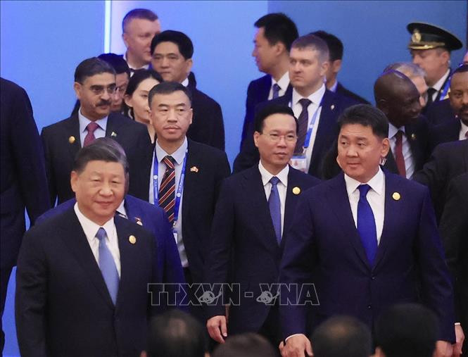 | Chủ tịch nước Võ Văn Thưởng, Chủ tịch Trung Quốc Tập Cận Bình và lãnh đạo các nước đến dự lễ khai mạc. |