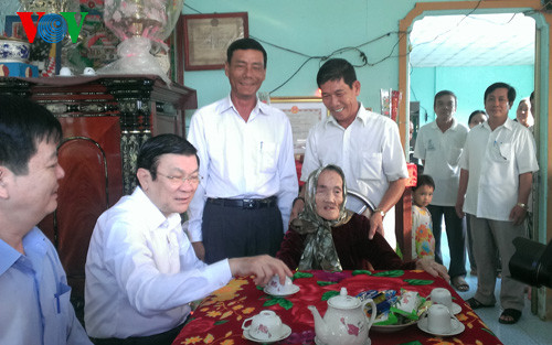 Dịp này, Chủ tịch nước Trương Tấn sang đã đến thăm, tặng quà Mẹ Việt Nam Anh hùng Huỳnh Thị Phận và thương binh hạng 1/4 Phạm Văn Tờ ở xã Tân Lân.