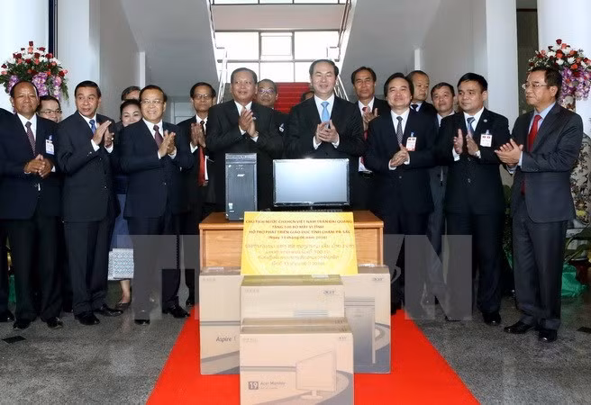 Chủ tịch nước Trần Đại Quang trao tặng 100 bộ máy vi tính cho tỉnh Champasak