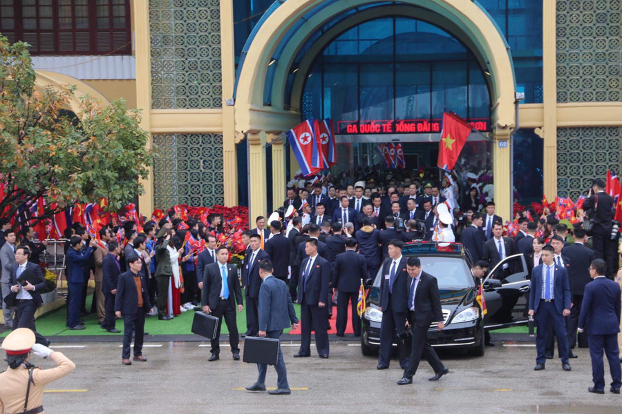 Trước đó, vào khoảng 8 giờ 13 phút, đoàn tàu bọc thép chở Chủ tịch Triều Tiên và phái đoàn đã đến ga Đồng Đăng.