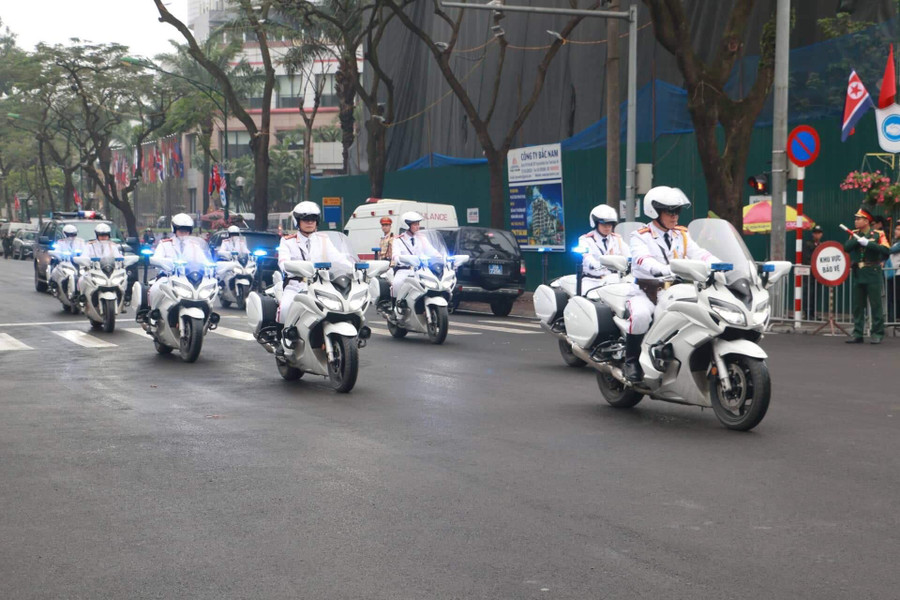 Tại đây, lễ đón ông Kim Jong-un diễn ra trong khoảng 30 phút. Đúng 8h30, đoàn xe của Triều Tiên lăn bánh về Hà Nội.