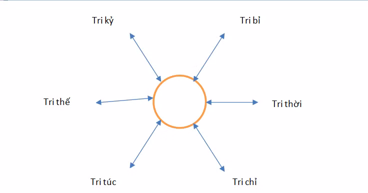 Nội dung Bảy tri gồm: Tri kỷ - Tri bỉ (Biết mình/ Biết người); Tri thế - Tri thời (Biết tình thế/ Xu thế Biết thời cơ (cơ may)/Nguy cơ (khó khăn); Tri biến (Biết biến đổi theo phương châm: Dĩ bất biến/ Ứng vạn biến Công thủ vận trù không sơ hở); Tri túc – Tri chỉ (Biết thế nào là đủ Biết đến đâu phải dừng)