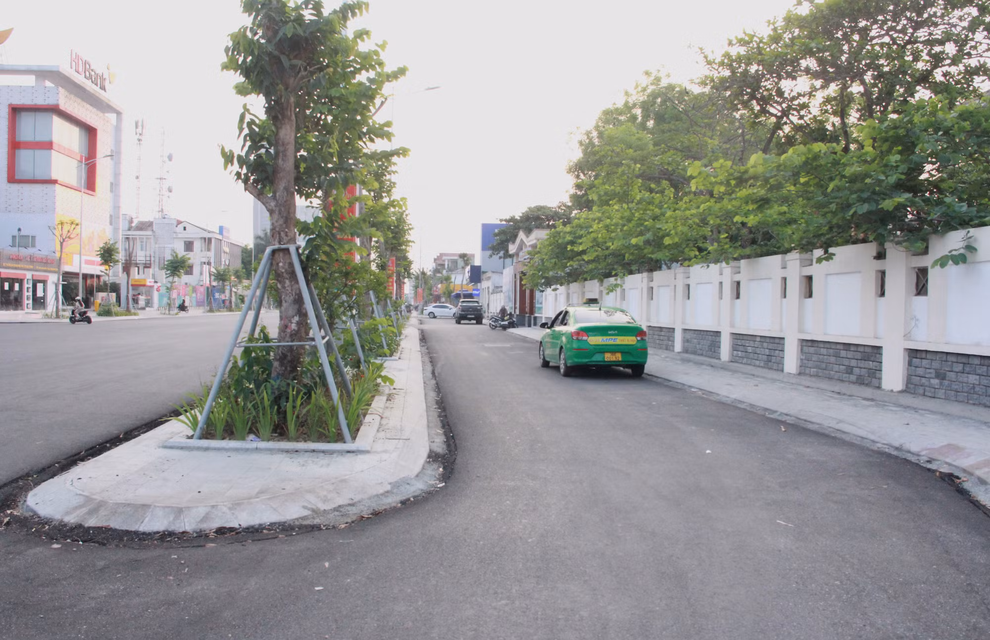 Việc nâng cấp hạ tầng không chỉ thay đổi diện mạo mà góp phần giúp TP Hà Tĩnh trở thành đô thị thông minh, năng động, từng bước là điểm nhấn của khu vực. (Ảnh làn đỗ xe có hàng cây phân cách trước cổng trường THPT Phan Đình Phùng)