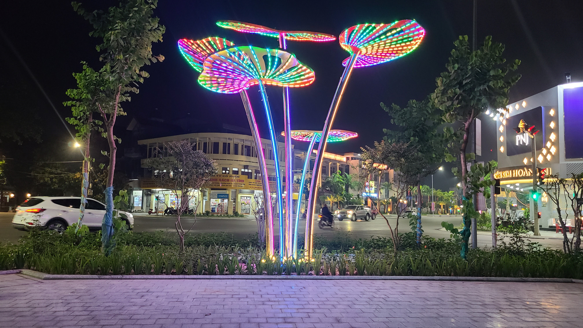 Về đêm, những ảnh đèn đường, những khu vực công cộng cũng là điểm nhấn trở nên thân thiện, nhẹ nhàng, giảm bớt sự ồn ào, vội vã nơi đô thị. (Ảnh khu vực ngã tư đường Nguyễn Công Trứ với Đường Phan Đình phùng về đêm)