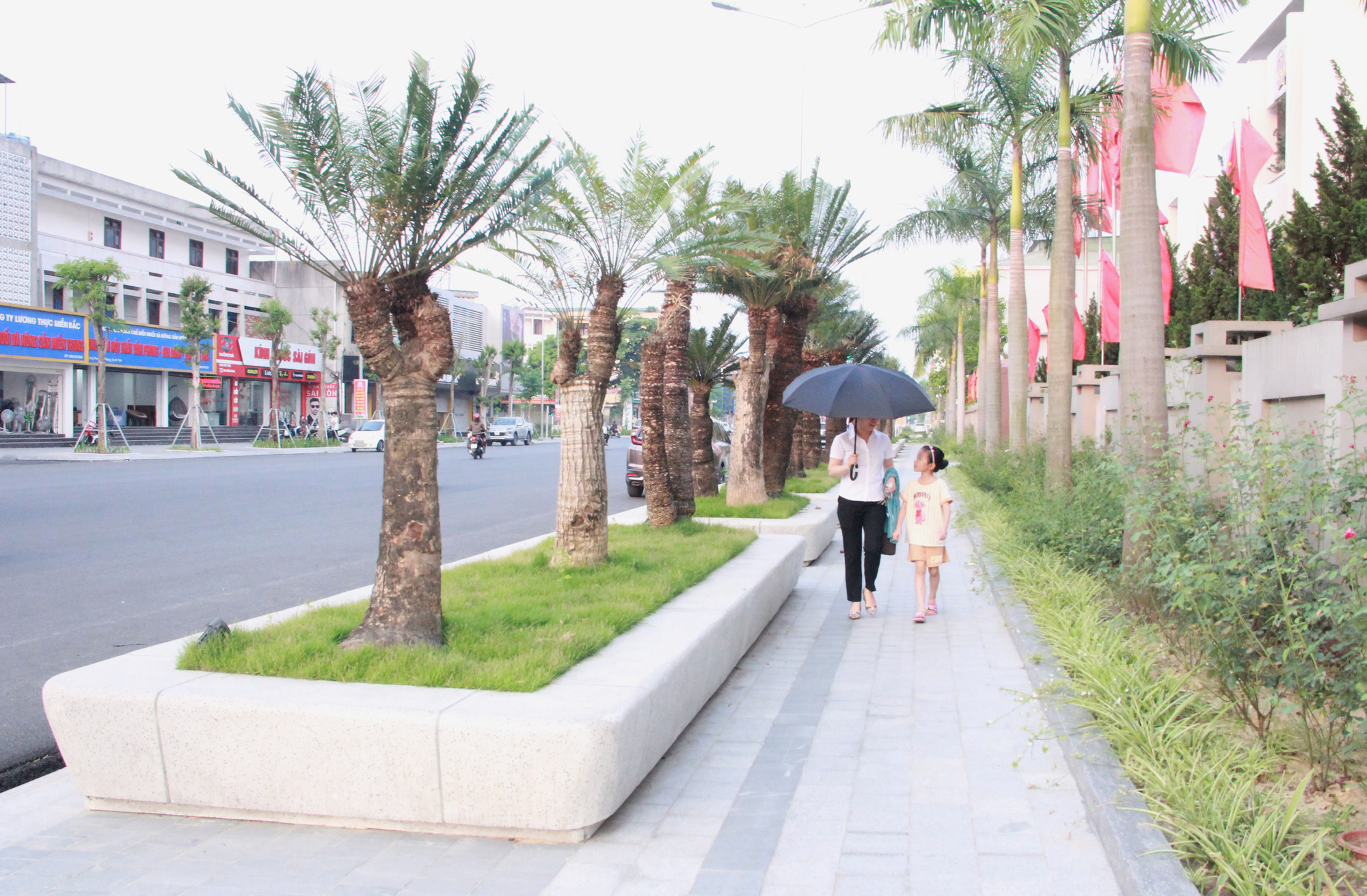 Quá trình lấy ý kiến, gần như các hộ dân có ảnh hưởng dự án đi qua các tuyến đường đều rất phấn khởi, đồng thuận cao với chủ trương chỉnh trang, nâng cấp của TP Hà Tĩnh. (Ảnh hàng cây xanh và vỉa hè được thay mới trên tuyến đường Phan Đình Phùng, TP Hà Tĩnh)