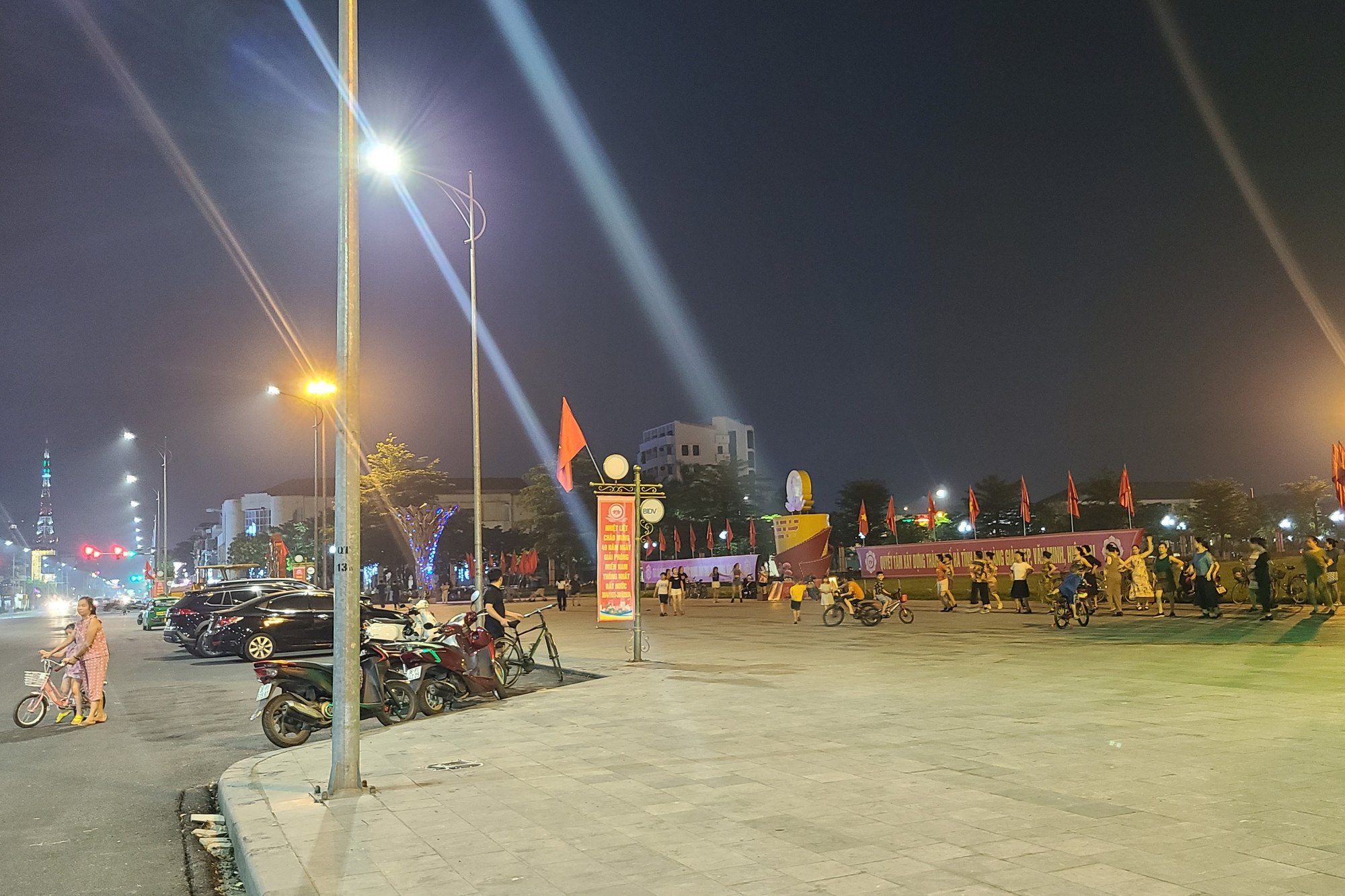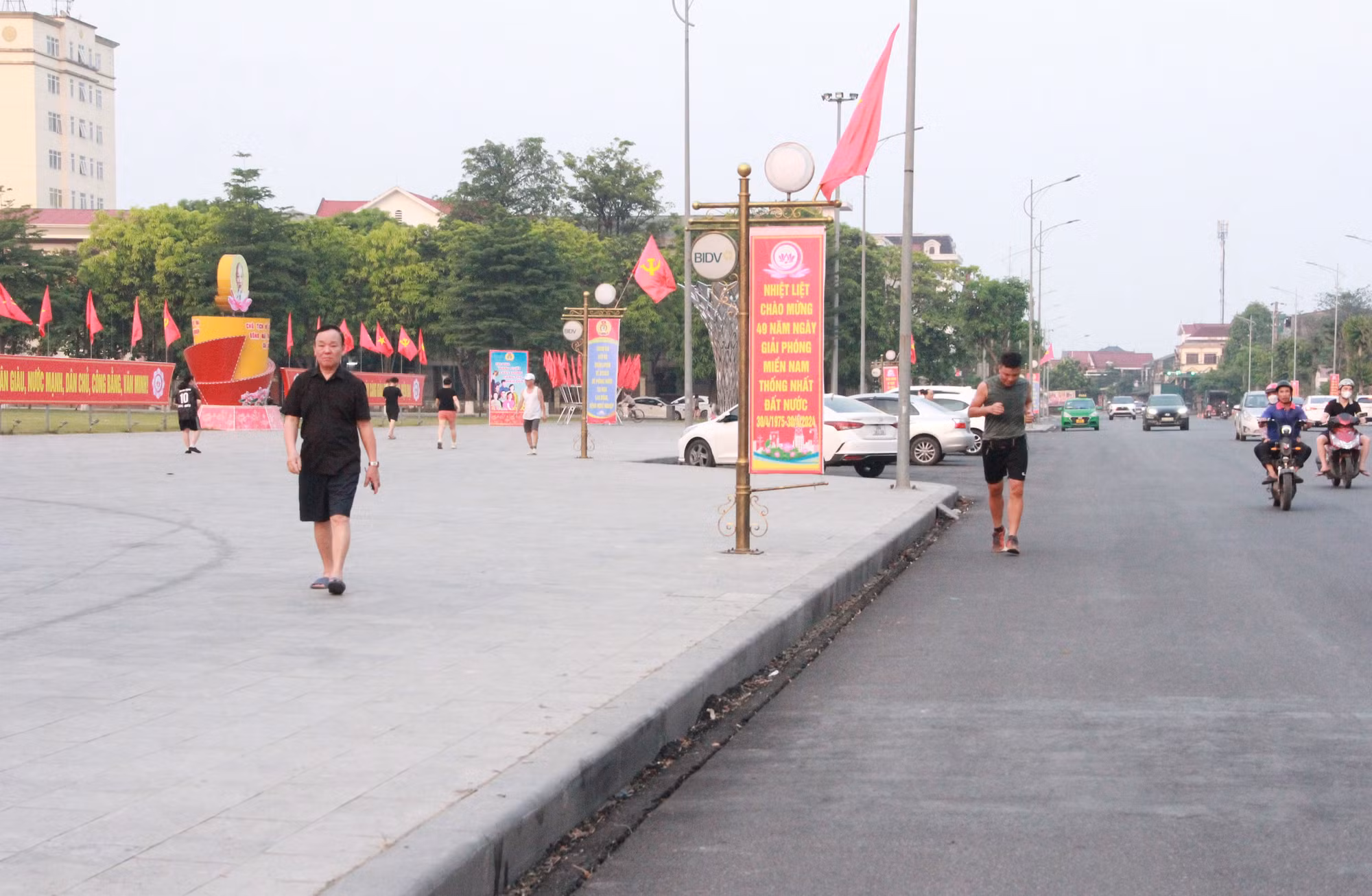 Những thay đổi hiện đại của TP Hà Tĩnh cũng giúp người dân có không gian để tận hưởng, giải tỏa căng thẳng sau những bộn bề lo toan của cuộc sống. (Ảnh người dân thư giản, tập thể dục quanh quảng trường UBND tỉnh Hà Tĩnh)