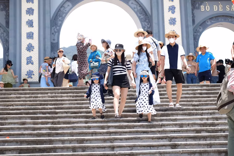 | Mặc dù thời tiết khá nắng nhưng du khách vẫn ùn ùn lên Chùa Linh Ứng. Ảnh: Hoàng Vinh. |