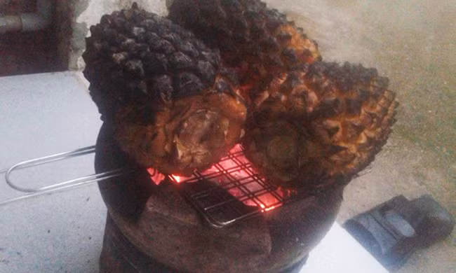 Dứa nướng trên bếp than.