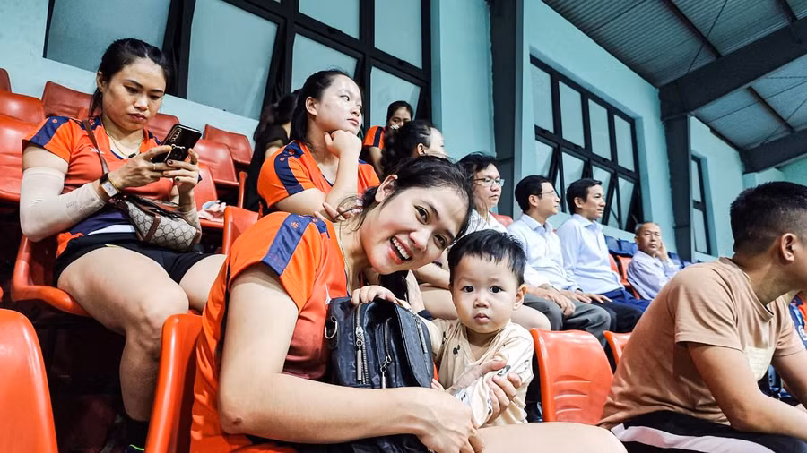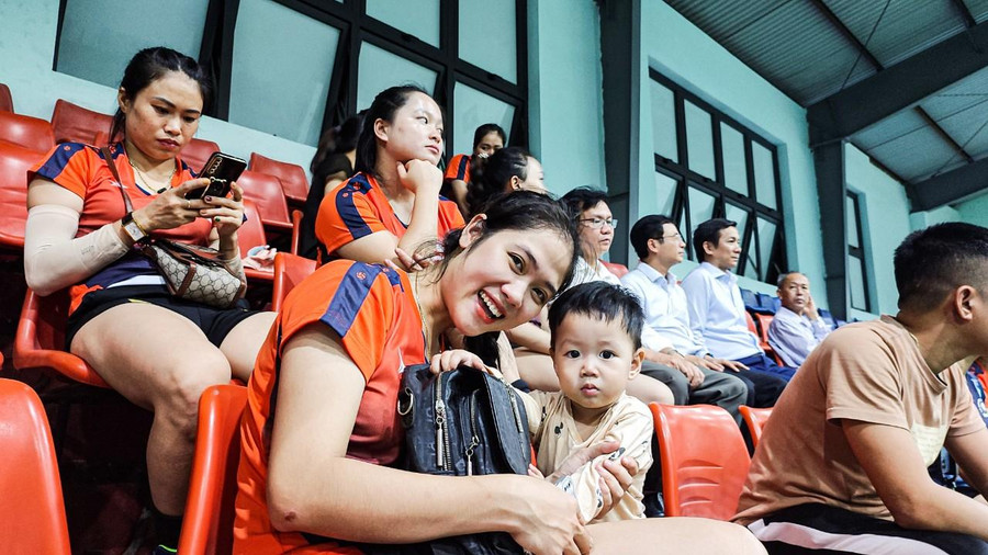 | Nhiều giáo viên mang con đến sân vận động cổ vũ cho đội nhà. |