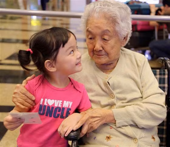 Shinyie Lim, người sống ở Hà Lan với con gái 3 tuổi Ruoxian đã đăng một bức ảnh của con gái và bà ngoại, Sip Neo Oon, 103 tuổi, vì cô muốn chia sẻ một trong những thời khắc vui vẻ của gia đình.