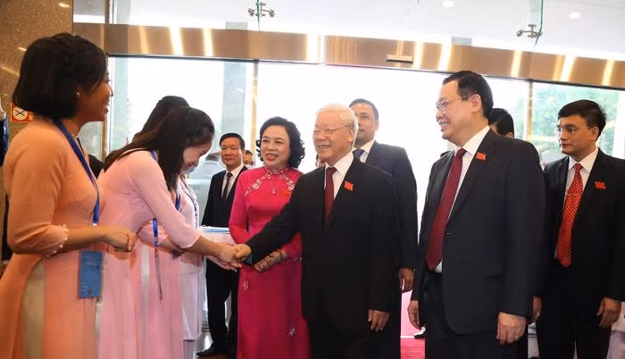 Tổng Bí thư, Chủ tịch nước Nguyễn Phú Trọng cùng các đại biểu dự Đại hội. Ảnh: VGP