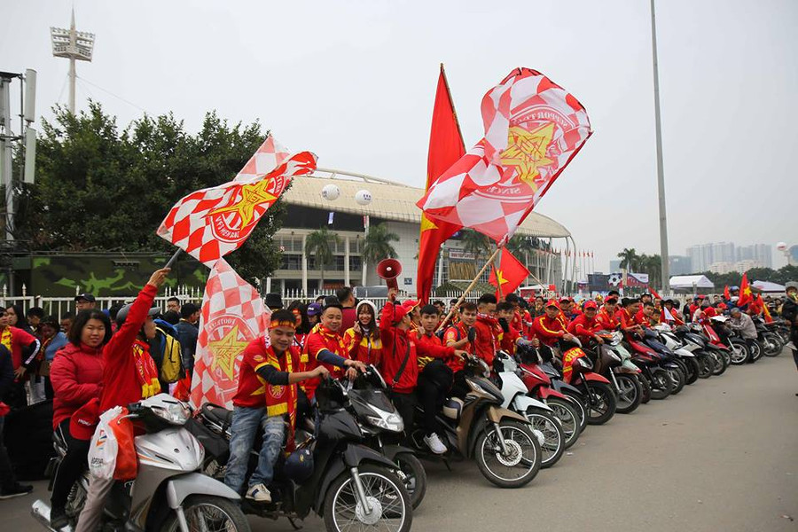 | CĐV từ mọi ngả đường đang tiến về nhuộm đỏ SVĐ Mỹ Đình. |
