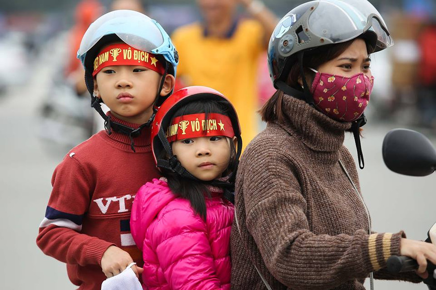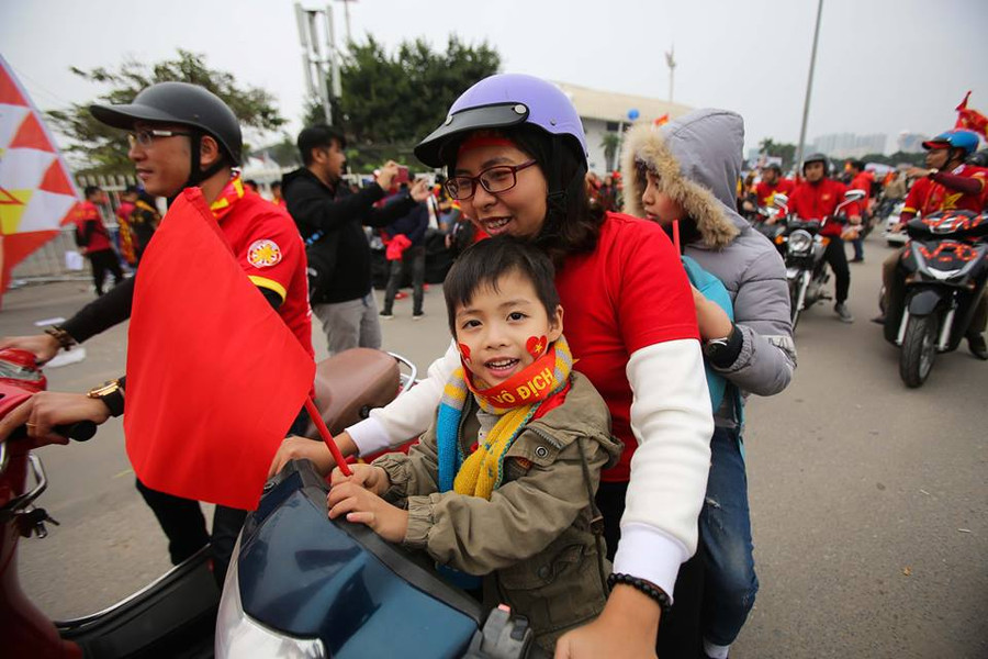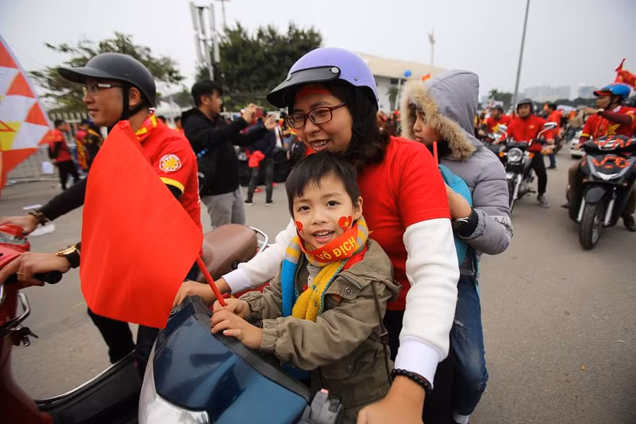 | Nhiều em nhỏ được bố mẹ đưa đến SVĐ Mỹ Đình để hòa chung không khí dân tộc ngày hôm nay. |