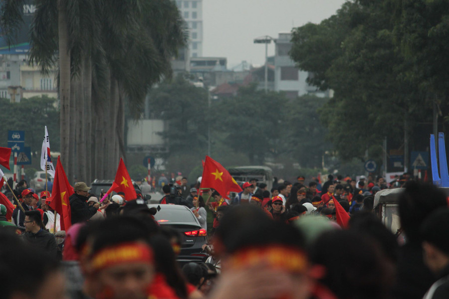 Mặc dù 19h30p hôm nay (15/12) trận đấu mới bắt đầu, nhưng ngay từ bây giờ, hàng nghìn CĐV trong sắc áo đỏ sao vàng đã hướng về sân vận động quốc gia Mỹ Đình, tạo nên bầu không khí vô cùng náo nhiệt.