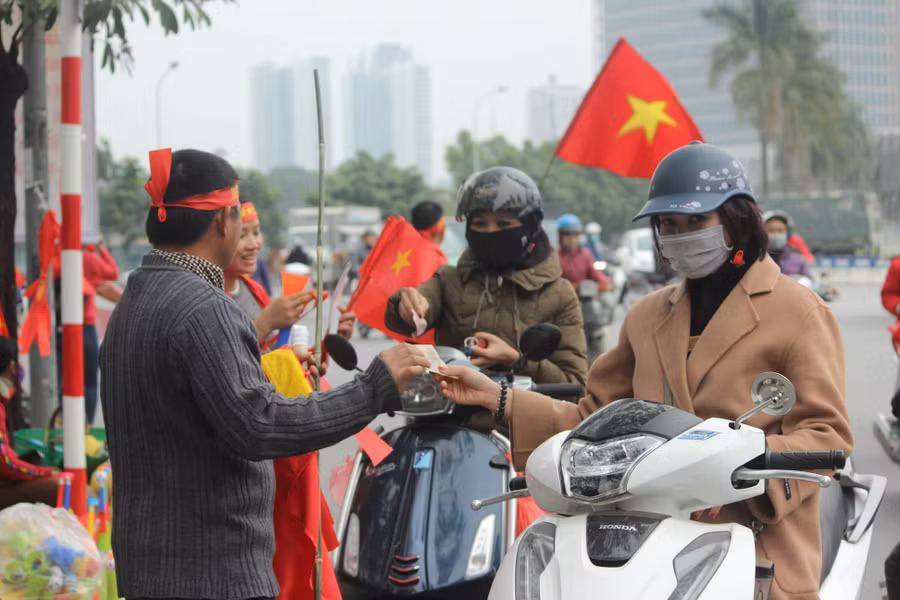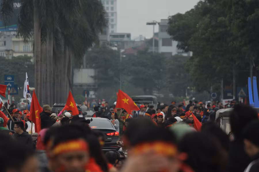 | CĐV từ khắp nơi đang hướng về sân Mỹ Đình bất chấp thời tiết Hà Nội đang rét, lạnh. |