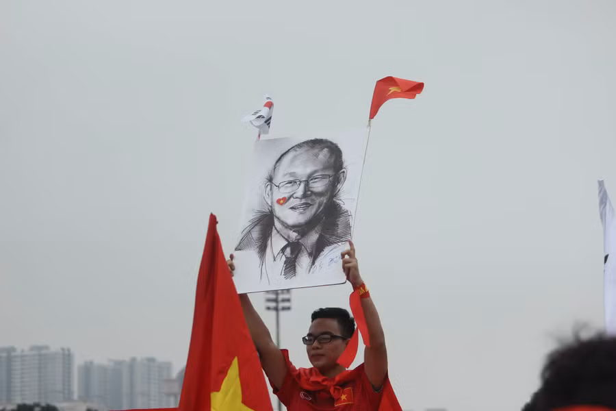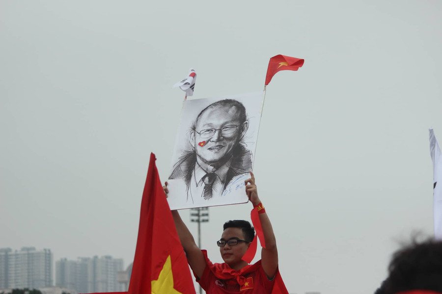 | Cờ Việt - Hàn được CĐV treo lên để cổ vũ tinh thần cho đội tuyển và như một lời cảm ơn đến với HLV Park Hang-Seo. |