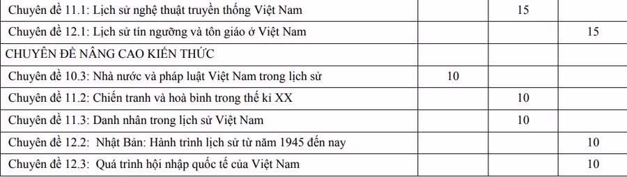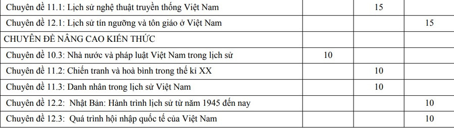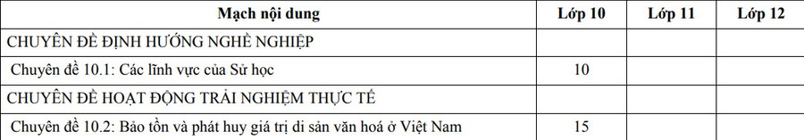 Thời lượng dành cho các chuyên đề học tập là 35 tiết. Dự kiến số tiết của các chuyên đề học tập (bao gồm cả kiểm tra, đánh giá) như sau:
