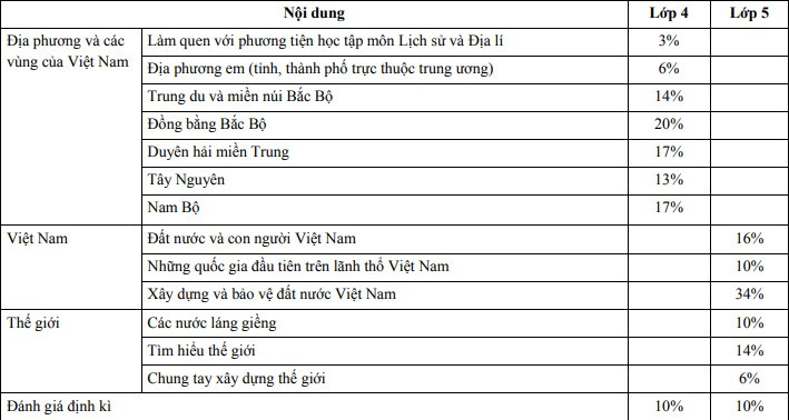 Đến lớp 4 và lớp 5, nội dung giáo dục lịch sử, địa lí được tổ chức thành một môn học độc lập nhằm giúp học sinh mở rộng và nâng cao hiểu biết về môi trường xung quanh, phù hợp với trình độ nhận thức của học sinh.