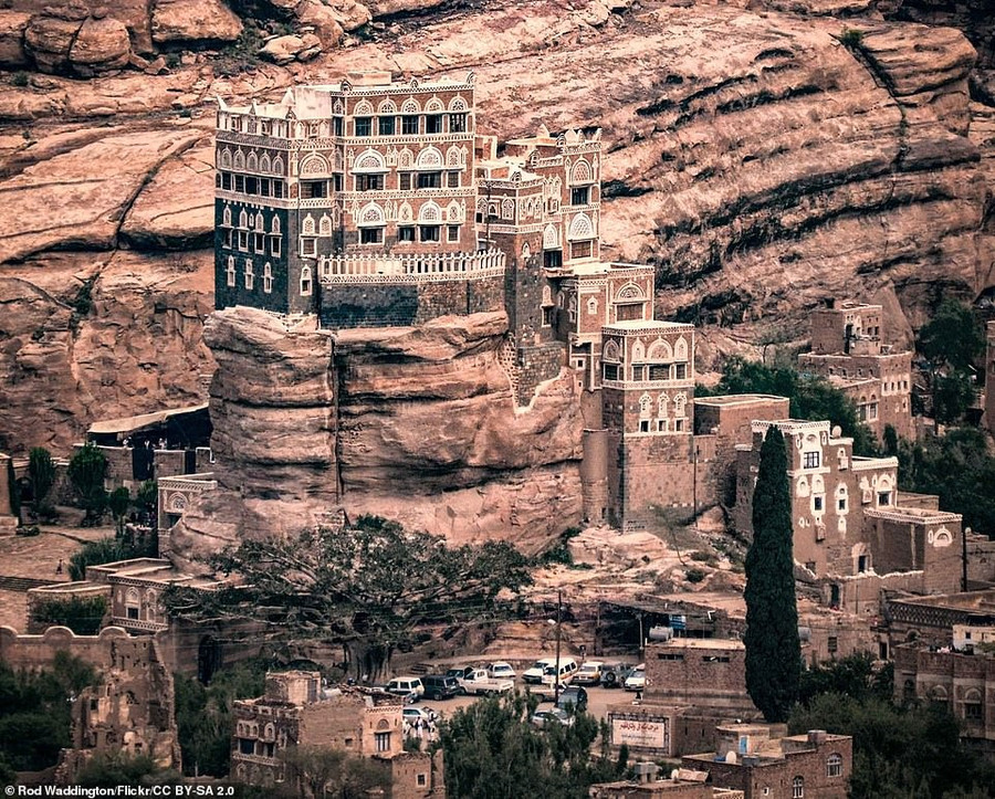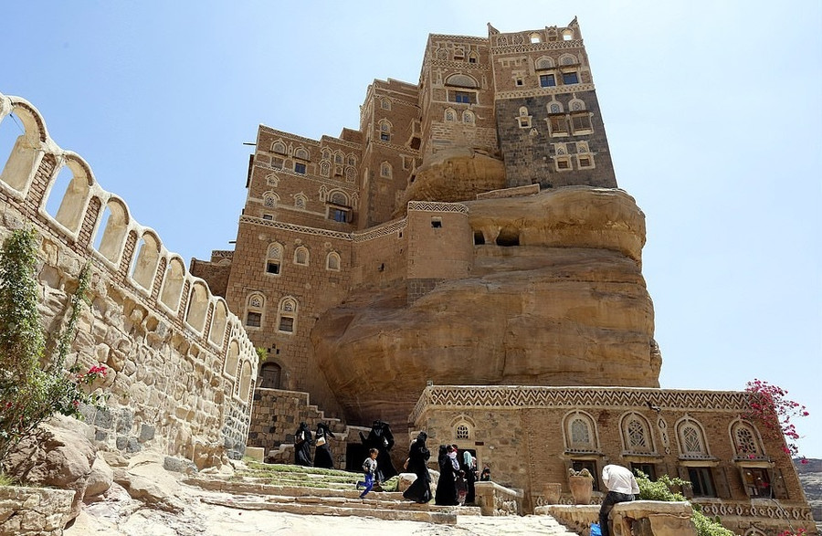 | Nằm ở thung lũng Wadi Dhahr cách thủ đô Sana'a gần 15 km, cung điện Dar al-Hajar được xây dựng làm nơi ở mùa hè cho quốc vương Yemen, Yahya Muhammad Hamiddin, từ những năm 1920. Cung điện trên cột đá này là một trong những công trình ngoạn mục nhất thế giới. |